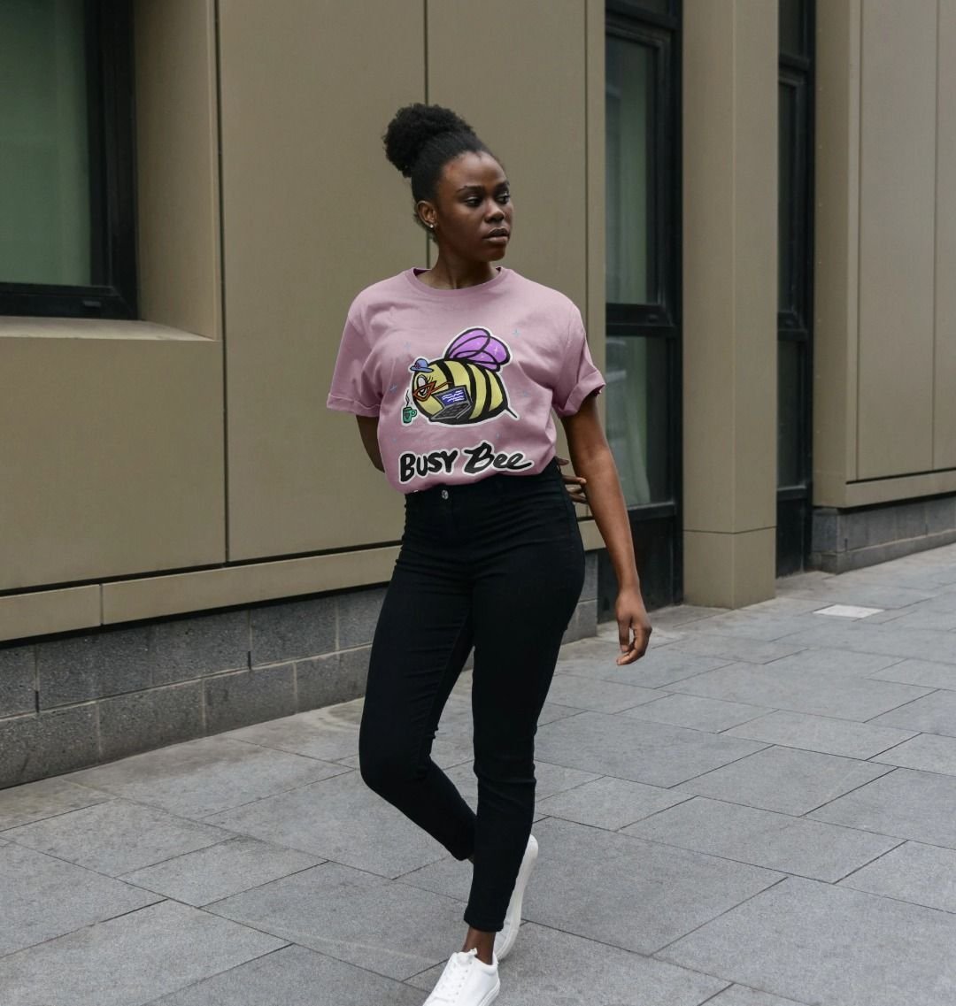 Soft, easy, and made for women who are always building something. This boxy, relaxed fit mauve tee features our signature u201cBusy Beeu201d design u2014 a subtle reminder that staying busy can still feel beautiful.